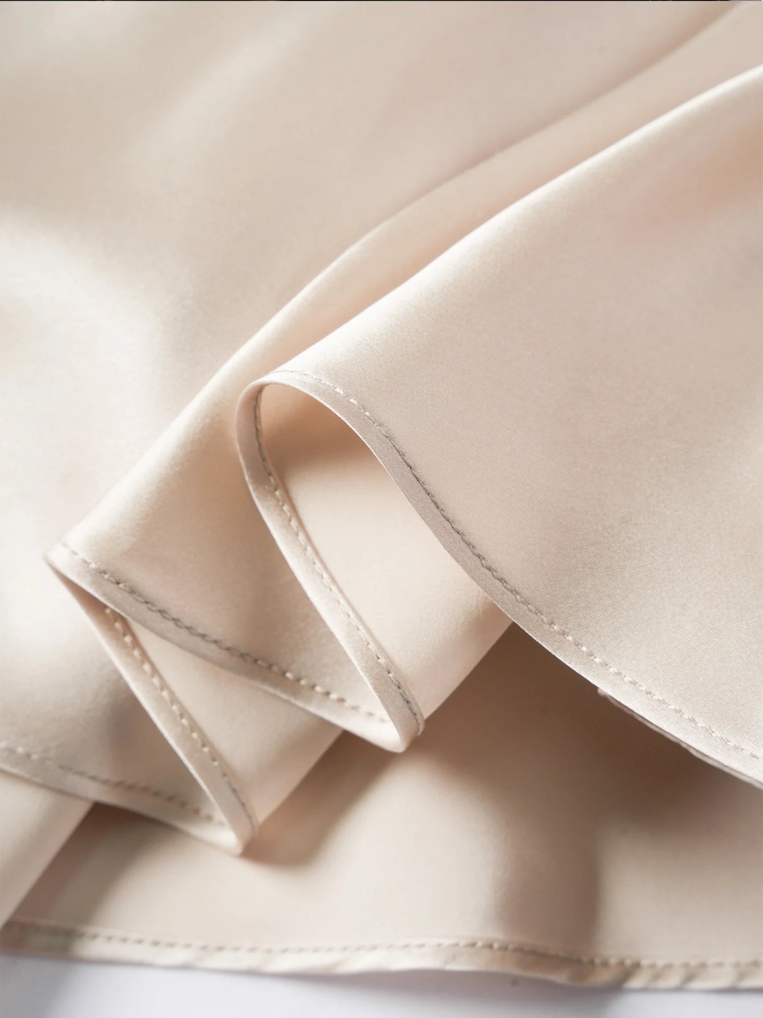 Crafted from a luxurious 21 Momme 100% natural Mulberry silk satin for an exquisite, heavyweight feel and a soft sheen.